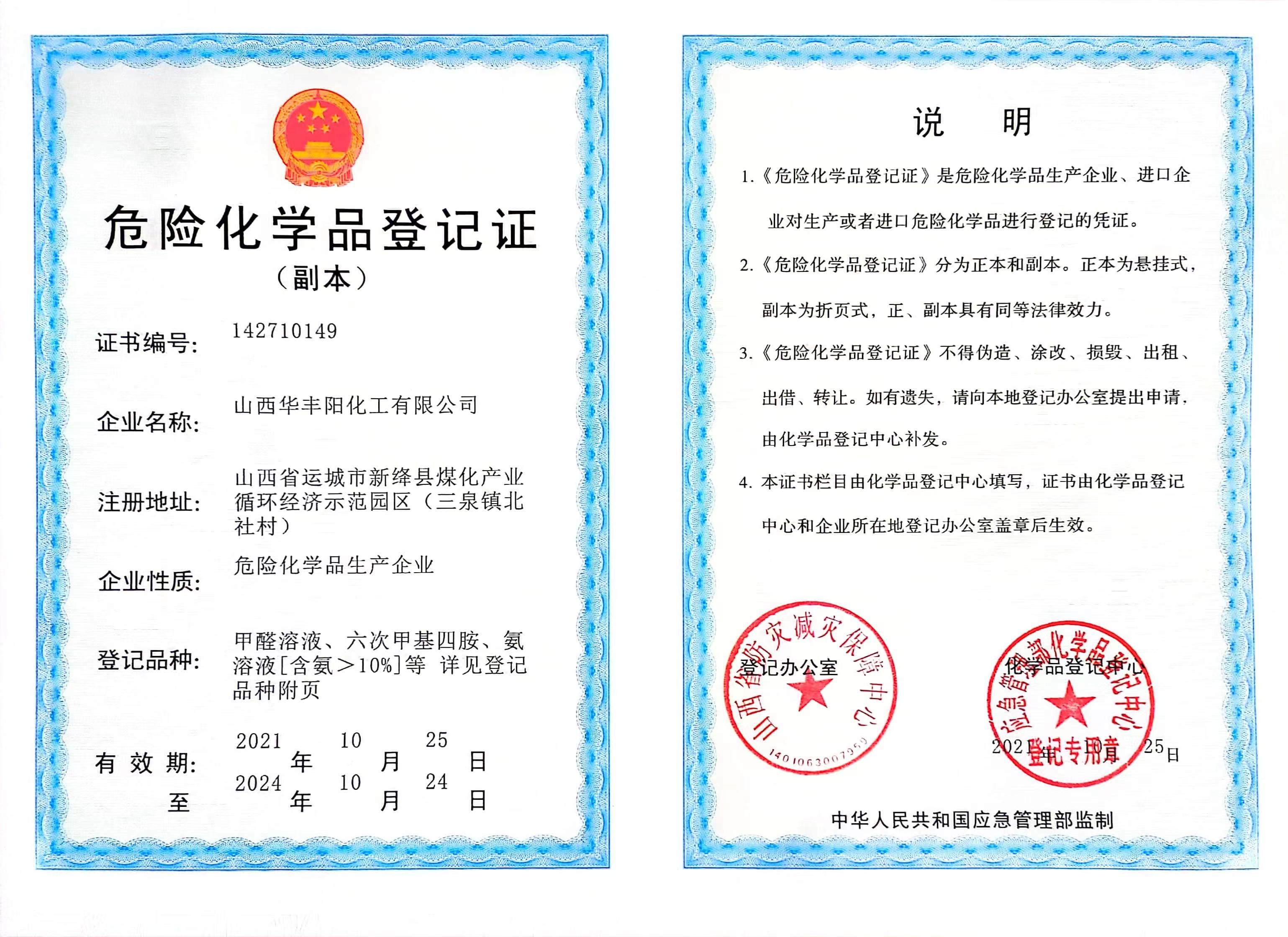 Shanxi Huafengyang Chemical Co., Ltd., established in October 2017, is located in the Industrial Circular Economy Demonstration Park of Fine Chemical Products in Xinjiang County, Shanxi Province. With a registered capital of 60 million yuan, the factory covers an area of 97 acres and has a joint production plant with an annual output of 30,000 tons of urotropine, 50,000 tons of formaldehyde and 80,000 tons of ammonia solution. It is an important production base in Shanxi Province.